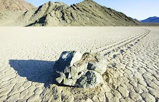 أوساط علماء الجيولوجيا، فحتى الرياح القوية في تلك المنطقة لن تستطيع زحزحة صخور ثقيلة الوزن لتلك المسافات الطويلة فالأرض تكون طينية ومبلولة بشكل كبير ، لذلك فقد اقترح فريق أخر من المهتمين والباحثين بدراسة تلك الظاهرة العجيبة أن سبب الحركة يعود إلى انه في الأجواء الباردة جدا ، وعندما يتجمد الماء المحيط بالصخور فإن تلك الكتل الحجرية تصبح حركتها سهلة أثناء هبوب العواصف القوية ، وبالرغم من ذلك فقد فشلت تلك النظرية في تفسير حركة صخور باتجاهات متعددة في نفس الوقت .وعليه فان كافة الفرضيات العلمية التي اقترحت لتفسير حل ذلك اللغز بقيت عاجزة.