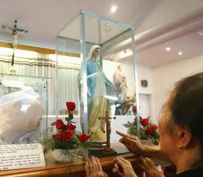 في مايو 2004 و في المركز الكاثوليكي الفيتنامي - أينالا الكائن في مدينة بريسبن الاسترالية انتشرت قصص عن تمثال لمريم العذراء مصنوع من البلاستر يبكي زيوتاً عطرية من منطقة العيون والأنف والجبين والأصابع وينزف دماً من الصليب بجانب التمثال ، حضر الآلاف لمشاهدة ذلك التمثال ، عندها رتب راعي الأبرشية جون باثرسبي لجنة للتحقيق في ما حدث ، وكان يرأس تلك اللجنة الدتور أدريان فارلي وهو باحث كيميائي متقاعد وغير مؤمن بوجود الله ، تم تصوير التمثال بالأشعة السينية X-Ray وتم تحليل عينات الدم والزيوت باستخدام طريقة الطيف لمعرفة مكونات المادة وجاءت النتائج كما يلي:- تكوين الزيت العطري لا يختلف عن أي زيت عطري متوفر في الأسواق التجارية، ومن الممكن أنه تم جلبه بشكل مقصود.