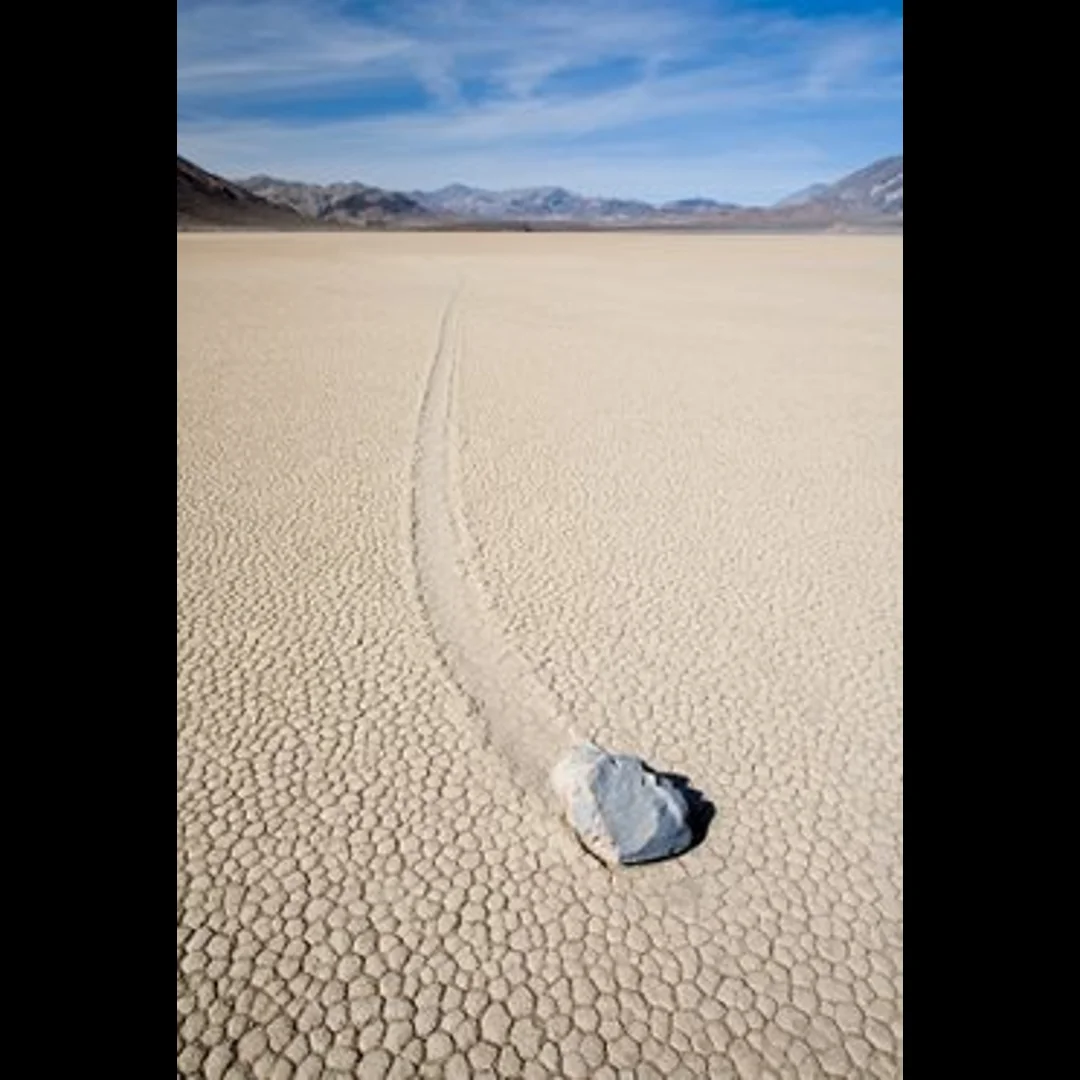 وكان بعض العلماء قد نظّروا بان كتلا هائلة من الجليد طوقت عدة صخور معا وحولتها إلى كتلة واحدة قبل أن تدفع بها عبر الصحراء. غير أن عمليات حسابية حديثة توصلت إلى أن قوة اندفاع الرياح ينبغي أن تكون بسرعة مئات الأميال في الساعة حتى تتمكن من دفع كتل الصخور بهذه الطريقة. وتشير نظرية لورينز إلى أن مجرد نسمة من الهواء تكفي لتحريك الصخور في ظل ظروف مواتية، لان الثلج يجعلها تطفو، الامر الذي يقلل من حدة الاحتكاك كثيرا.