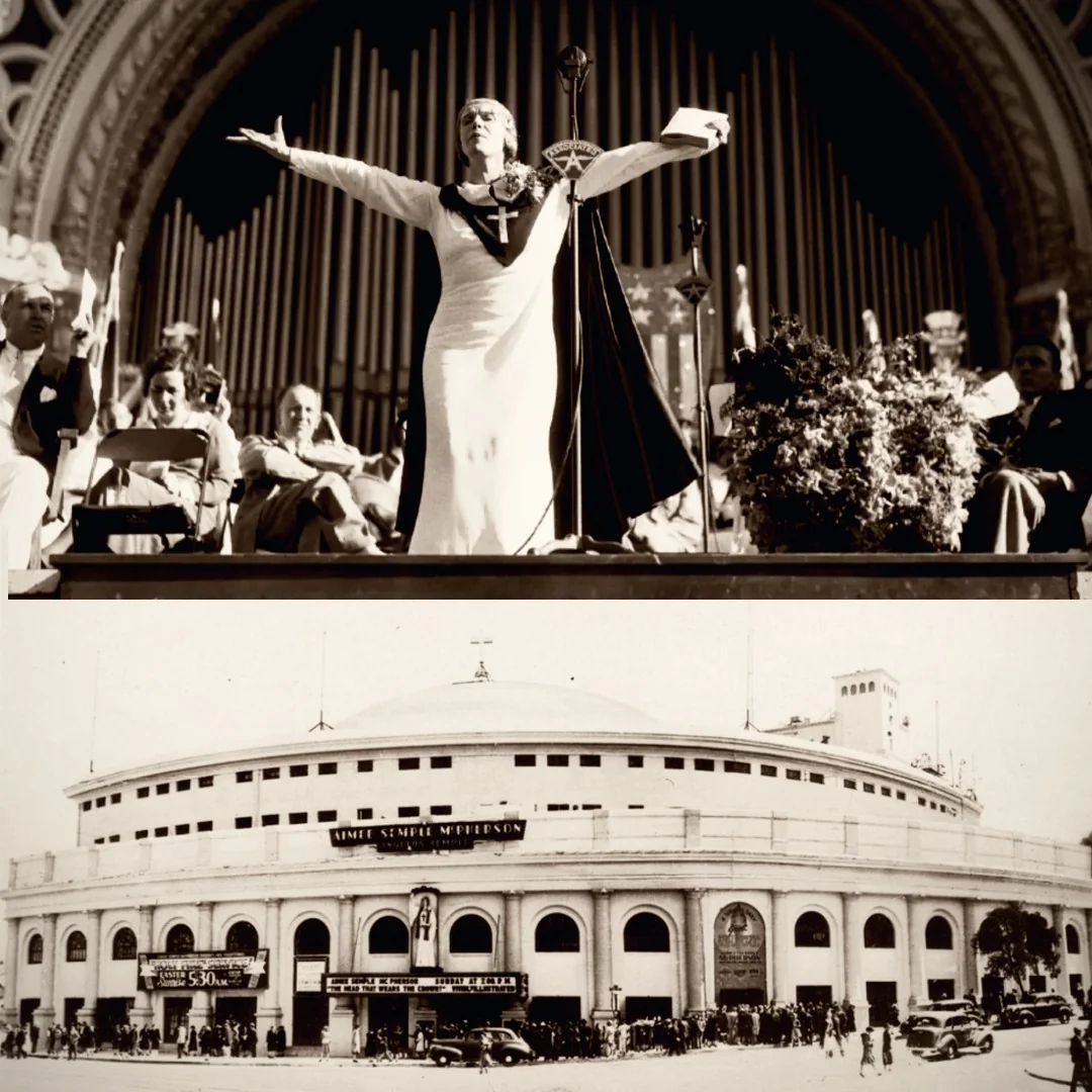 ولدت مكفيرسون عام 1890 في كندا، وسرعان ما أصبحت واحدة من أبرز الوجوه في حركة "العنصرة" Pentecostalism الأمريكية. وقد عُرفت بخطبها الكاريزمية، وتوظيفها المبهر للإذاعة والمسرح داخل الكنيسة، وفي عام 1923 أسست "معبد أنجلوس" في لوس أنجلوس، وهو أول كنيسة عملاقة في الولايات المتحدة، وكان يتسع لأكثر من 5000 شخص. لم تكن مجرد واعظة دينية تقليدية بل أيقونة إعلامية أحدثت ثورة في الخطاب الديني، بل وصفها البعض بأنها "نجمة هوليوودية بخلفية دينية".